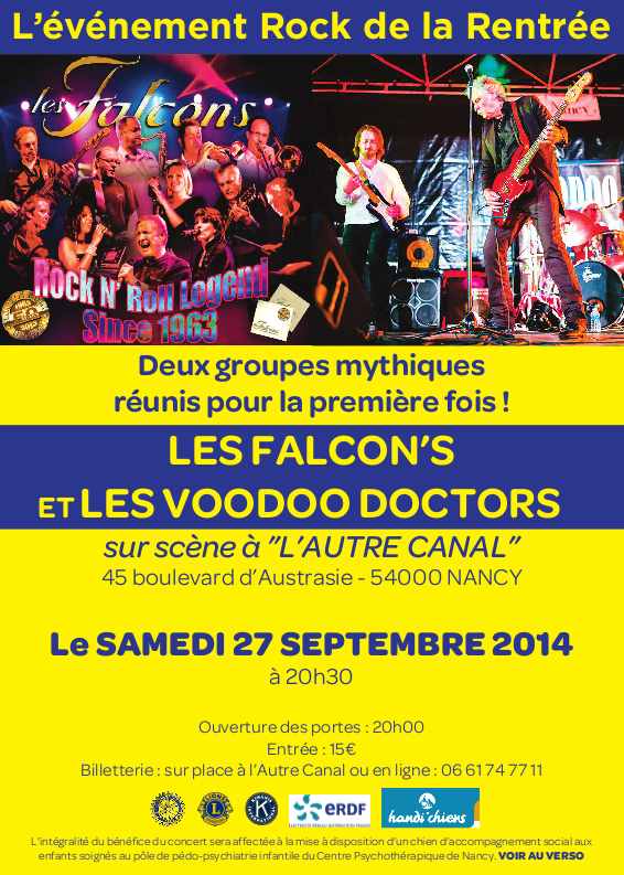 le 27 septembre 2014, VOODOO Doctors et les FALCON'S Le concert est également sur le site de l'Autre Canal avec réservation en ligne.