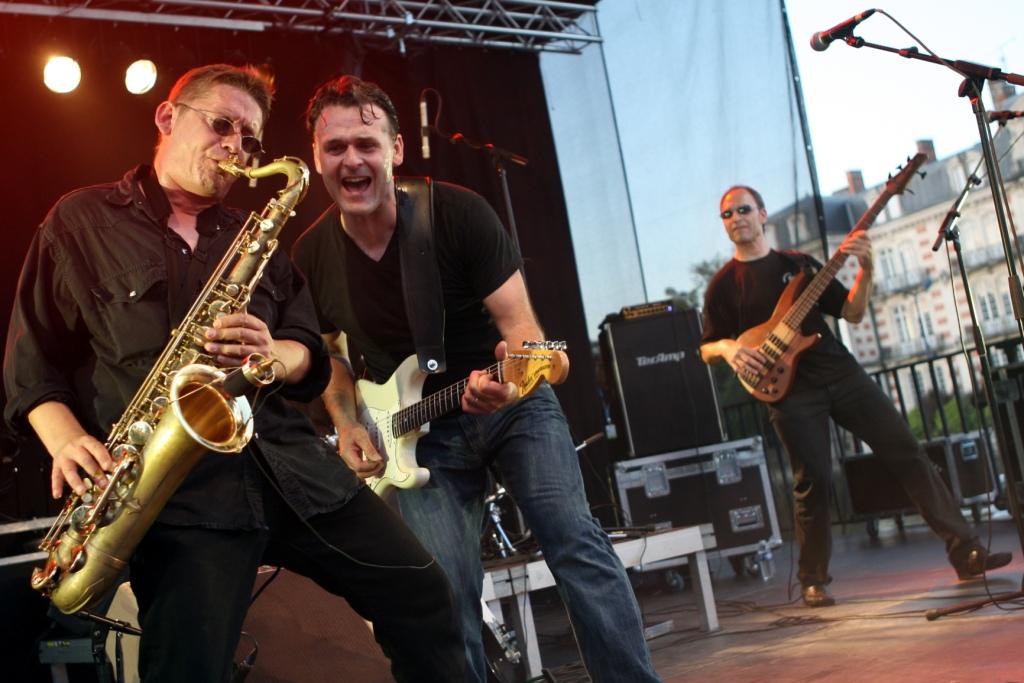 d'Olivier (guitare, chant), Enzo (basse), Jeff (saxo) et Guillaume